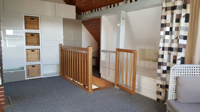 Eine Schiebetür führt zum Elternschlafraum,
